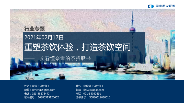 【国泰君安证券】【20210217】茶饮行业:一文看懂奈雪的茶招股书-重塑茶饮体验,打造茶饮空间-21页