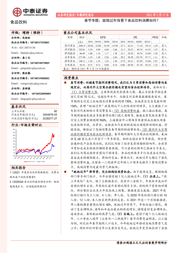 【中泰证券】【20210217】20210217-中泰证券-食品饮料春节专题:就地过年背景下食品饮料消费如何?-11页