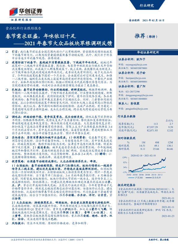 【华创证券】【20210218】2021年春节大众品板块草根调研反馈:春节需求旺盛,年味依旧十足-30页