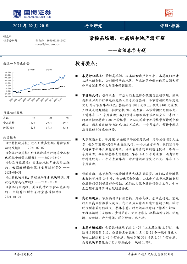 【国海证券】【20210220】白酒春节专题:紧握高端酒,次高端和地产酒可期-12页