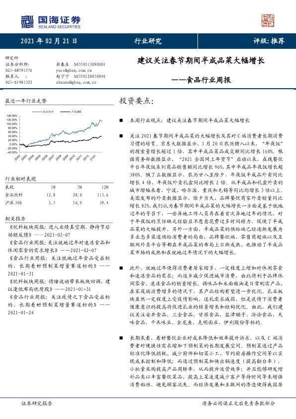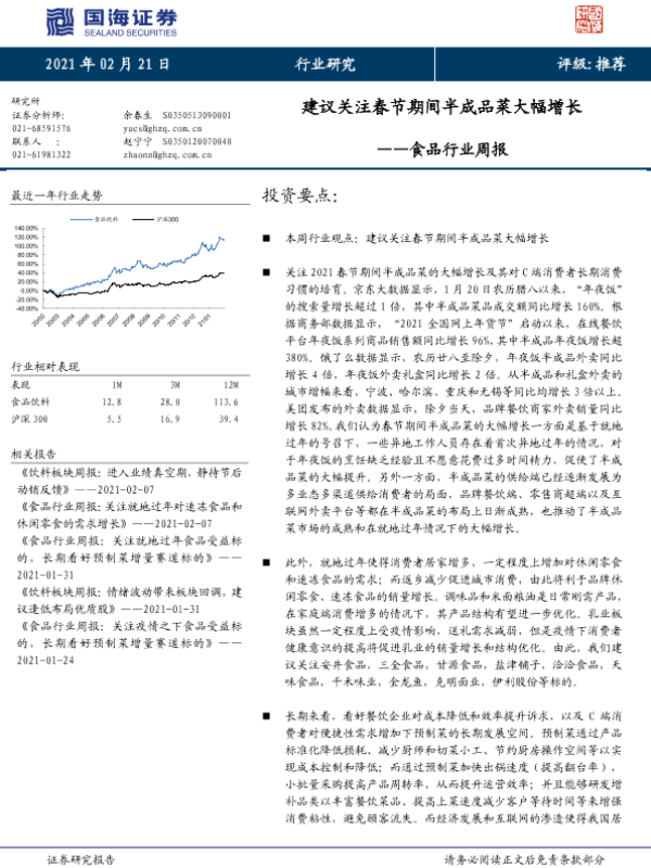 【国海证券】【20210221】食品行业周报:建议关注春节期间半成品菜大幅增长-20页