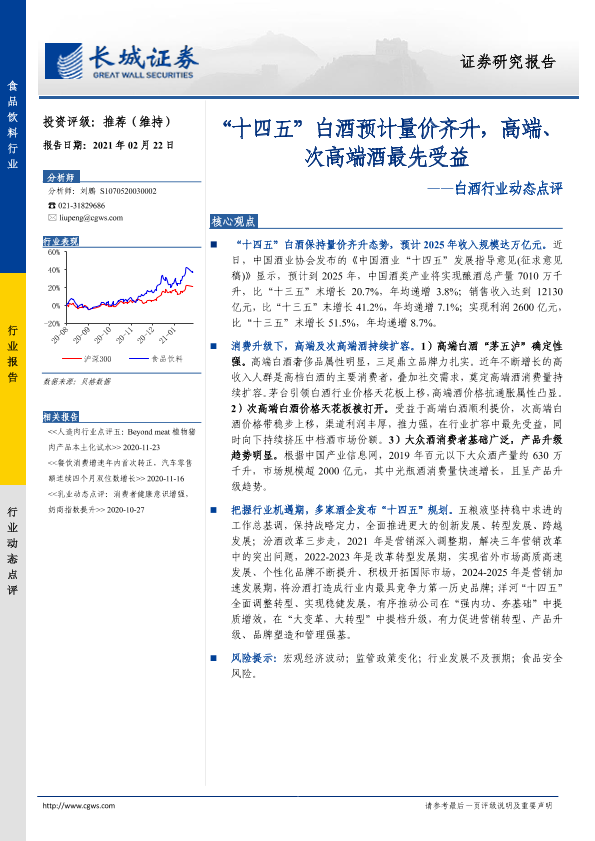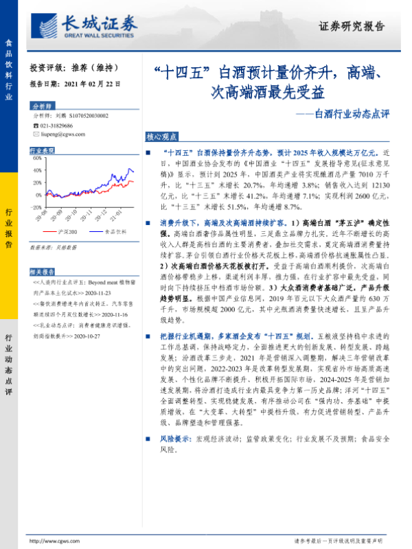 【长城证券】【20210222】“十四五”白酒预计量价齐升,高端、次高端酒最先受益-2页