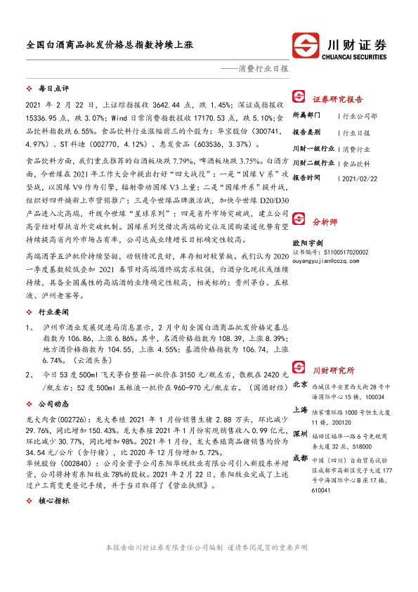 【川财证券】【20210222】消费日报:全国白酒商品批发价格总指数持续上涨-3页