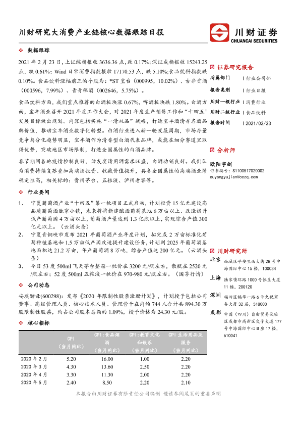 【川财证券】【20210223】川财研究大消费产业链核心数据跟踪日报-4页