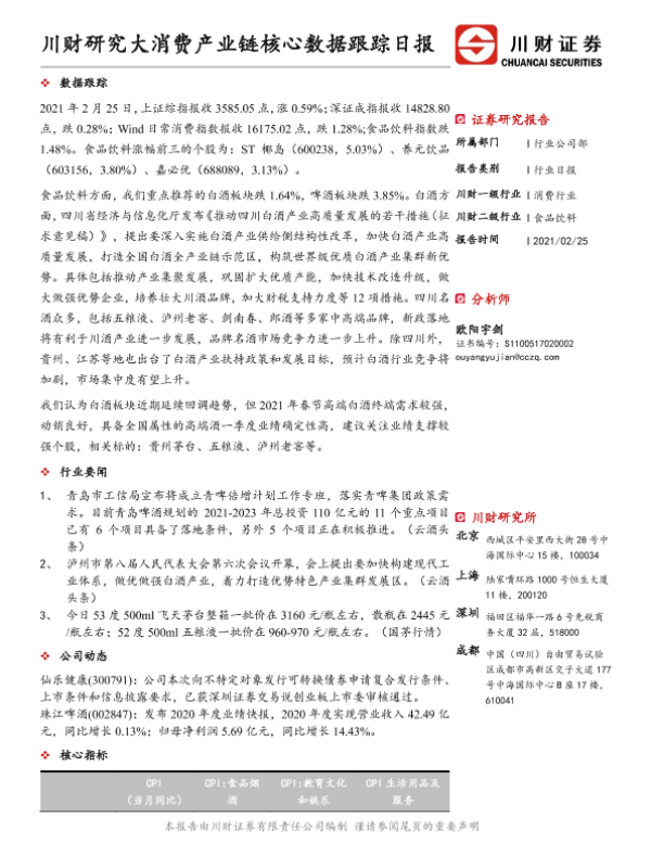 【川财证券】【20210225】20210225-川财证券-大消费产业链核心数据跟踪日报-4页