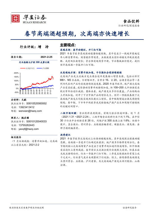 【华安证券】【20210225】20210225-华安证券-食品饮料行业深度报告:春节高端酒超预期,次高端亦快速增长-13页