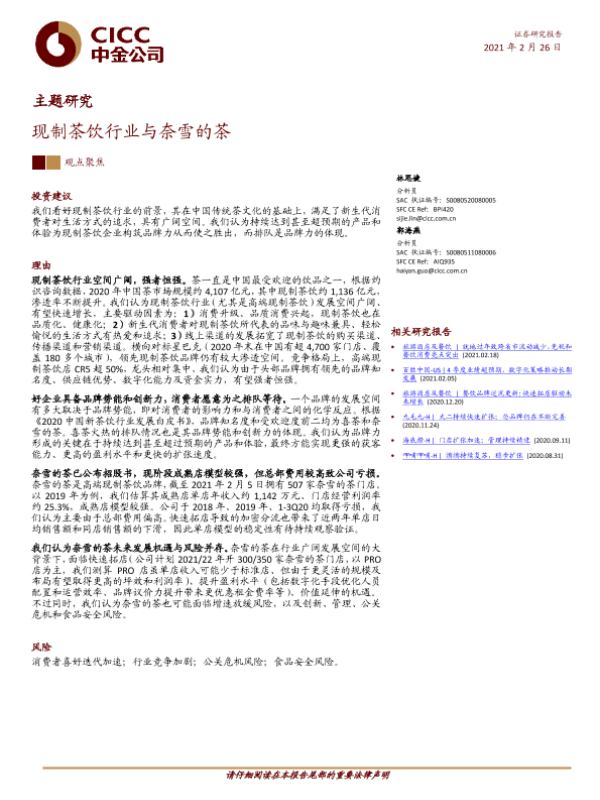 【中金公司】【20210226】现制茶饮行业与奈雪的茶-18页