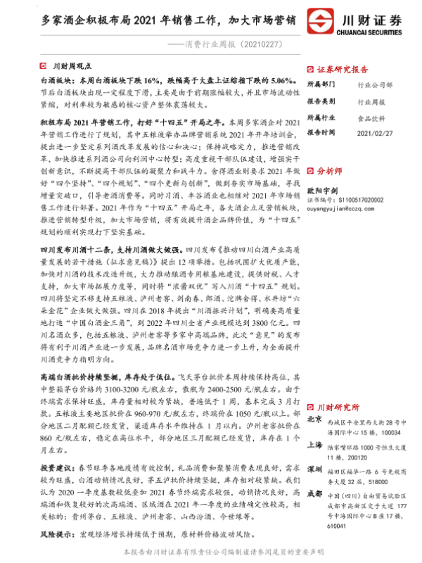 【川财证券】【20210227】消费行业周报:多家酒企积极布局2021年销售工作,加大市场营销-12页