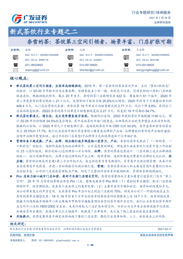 【广发证券】【20210228】新式茶饮行业专题之二:奈雪的茶:茶饮第三空间引领者,场景丰富、门店扩张可期-48页