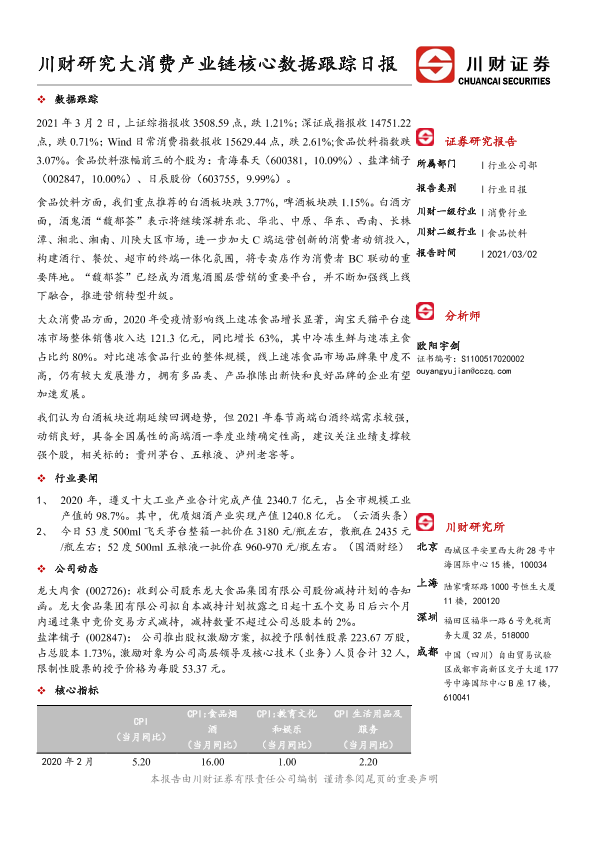 【川财证券】【20210302】食品饮料:川财研究大消费产业链核心数据跟踪日报-4页
