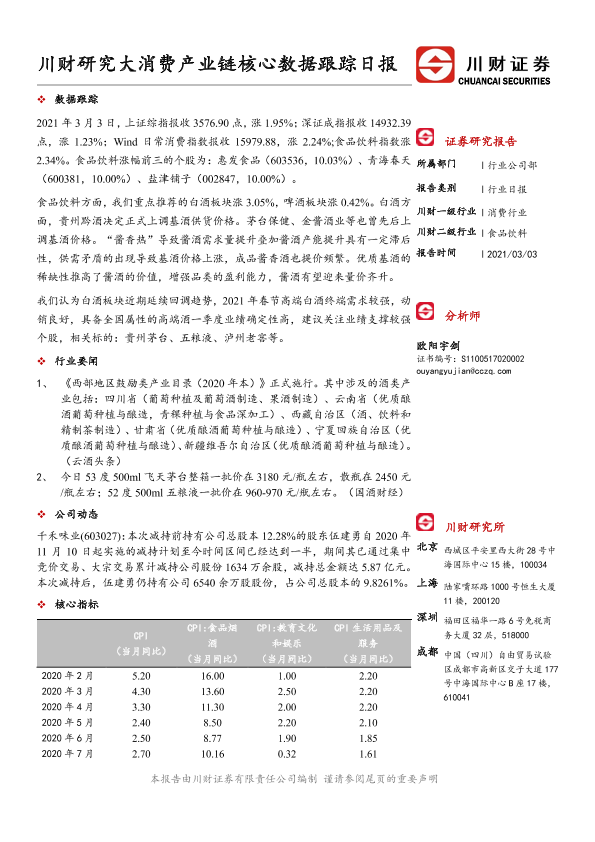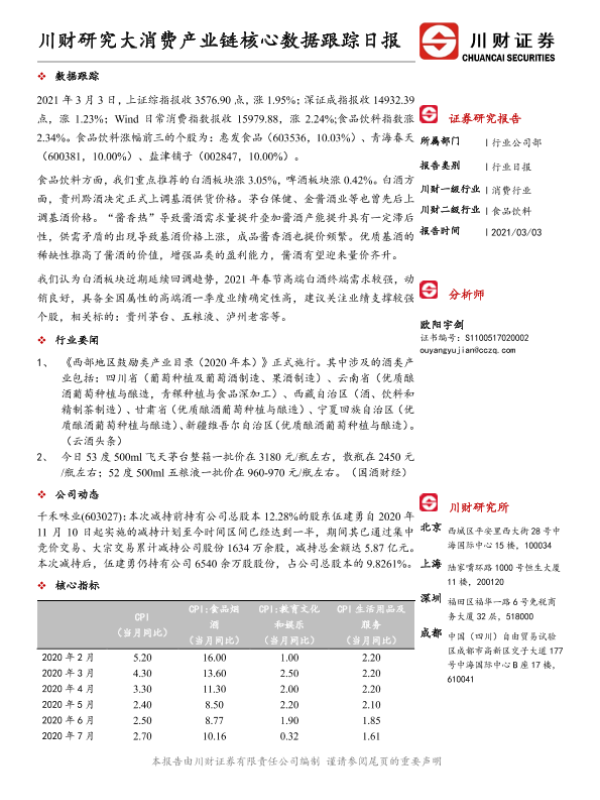 【川财证券】【20210303】川财研究大消费产业链核心数据跟踪日报-4页