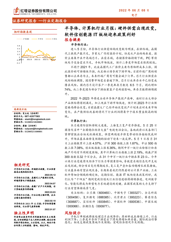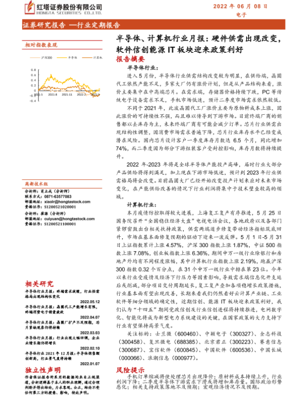 【红塔证券】【20220608】半导体、计算机行业月报:硬件供需出现改变,软件信创能源IT板块迎来政策利好-17页