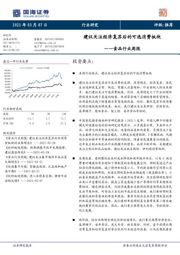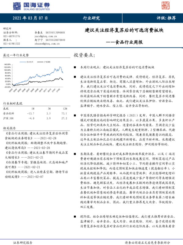 【国海证券】【20210307】20210307-国海证券-食品行业周报:建议关注经济复苏后的可选消费板块-21页