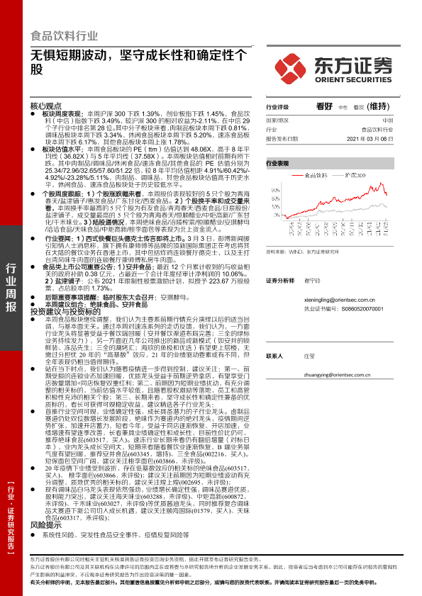 【东方证券】【20210308】20210308-东方证券-食品饮料行业周报:无惧短期波动,坚守成长性和确定性个股-12页
