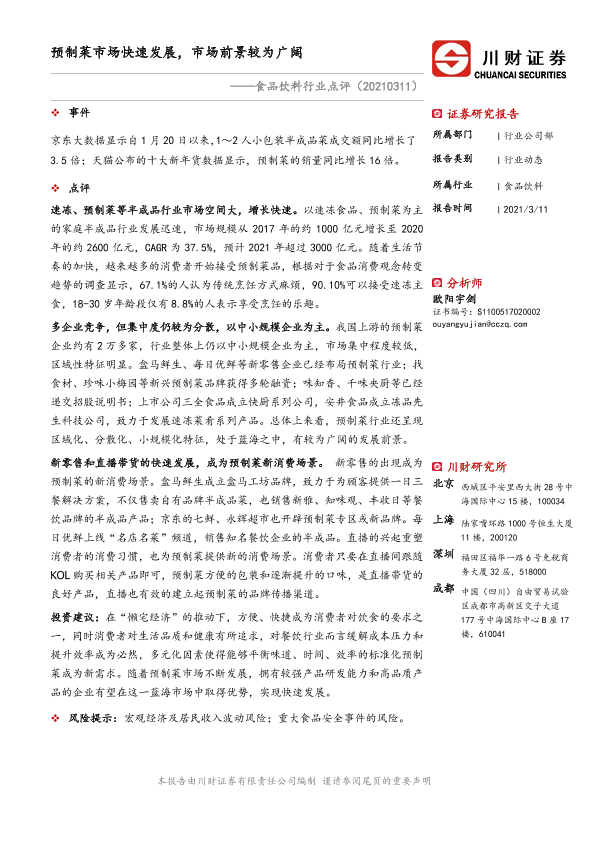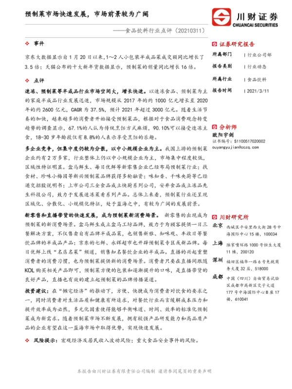 【川财证券】【20210311】食品饮料行业点评:预制菜市场快速发展,市场前景较为广阔-2页