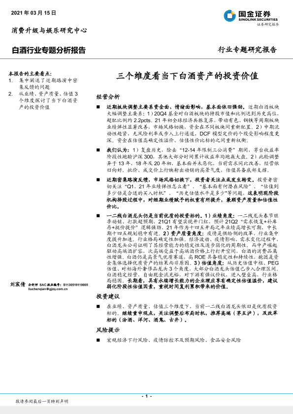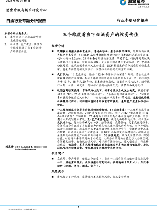 【国金证券】【20210315】20210315-国金证券-白酒行业专题分析报告:三个维度看当下白酒资产的投资价值-10页