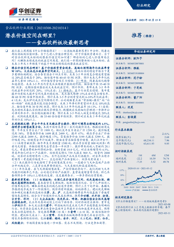 【华创证券】【20210315】20210315-华创证券-食品饮料行业周报:食品饮料板块最新思考-潜在价值空间在哪里?-12页