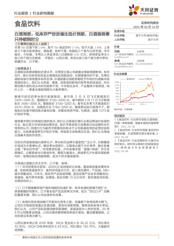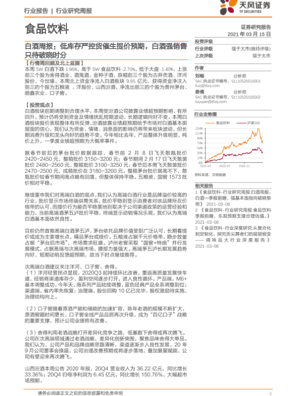【天风证券】【20210315】20210315-天风证券-白酒周报:低库存严控货催生提价预期,白酒强销售只待破晓时分-8页