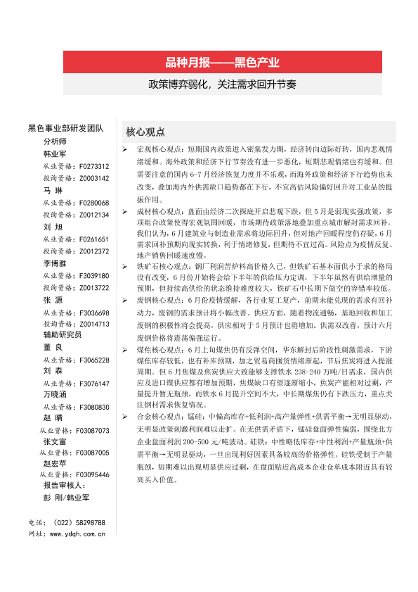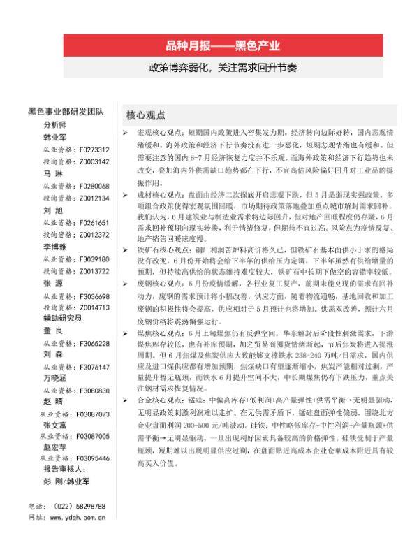 【一德期货】【20220606】品种月报_黑色产业:政策博弈弱化,关注需求回升节奏-80页