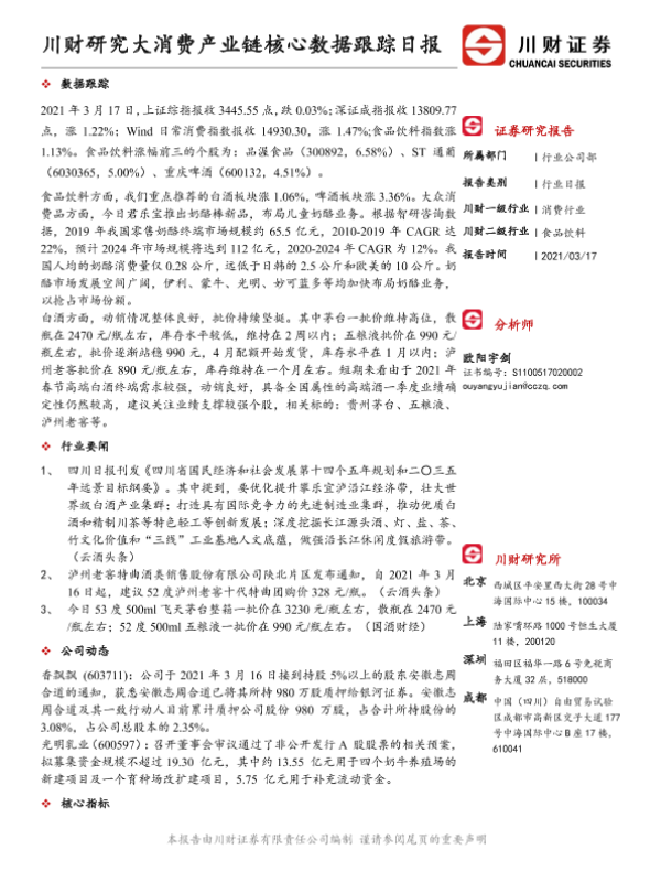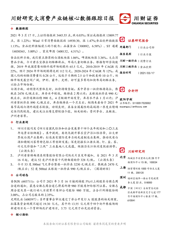 【川财证券】【20210317】川财研究大消费产业链核心数据跟踪日报-4页