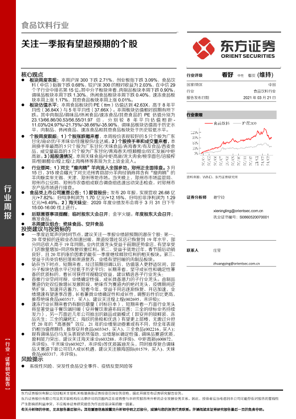 【东方证券】【20210321】食品饮料行业:关注一季报有望超预期的个股-12页