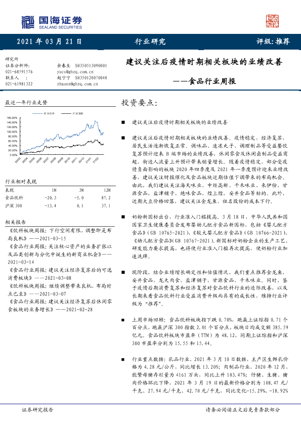 【国海证券】【20210321】20210321-国海证券-食品行业周报:建议关注后疫情时期相关板块的业绩改善-21页