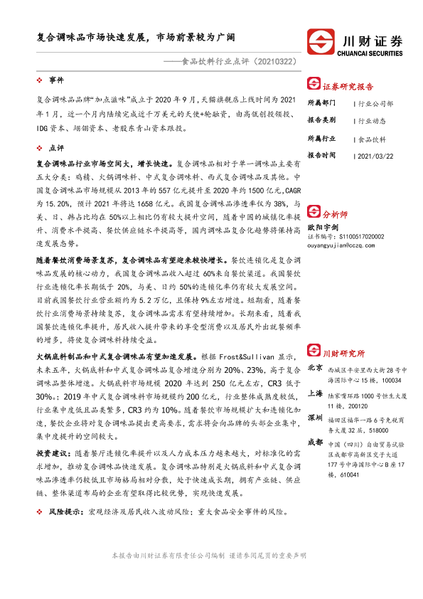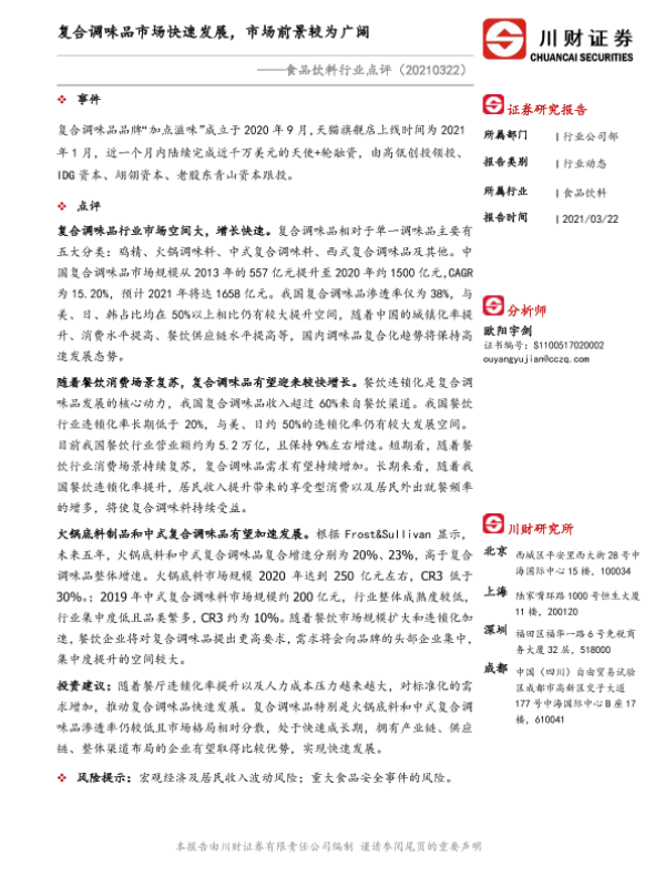 【川财证券】【20210322】食品饮料行业点评:复合调味品市场快速发展,市场前景较为广阔-2页