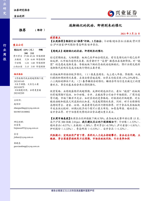 【兴业证券】【20210321】20210321-兴业证券-食品饮料行业周报:逐渐钝化的扰动,即将到来的催化-15页
