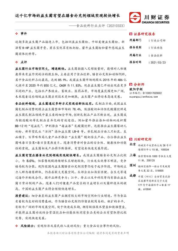 【川财证券】【20210323】近千亿市场的益生菌有望在膳食补充剂领域实现较快增长-2页