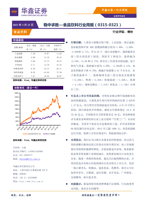 【华鑫证券】【20210323】20210323-华鑫证券-食品饮料行业周报:稳中求胜-12页