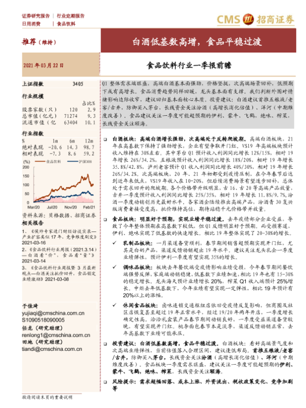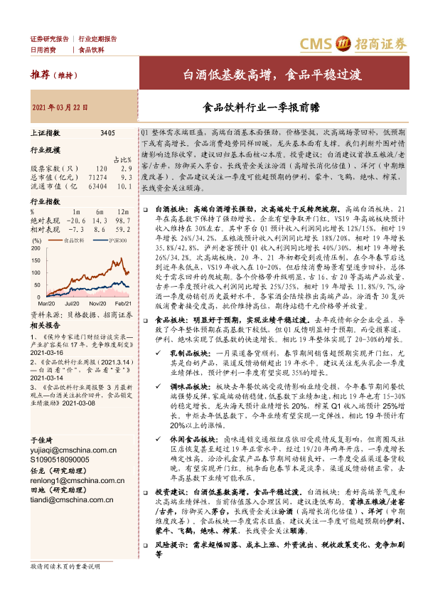 【海通证券】【20210322】食品饮料行业一季报前瞻:白酒低基数高增,食品平稳过渡-9页