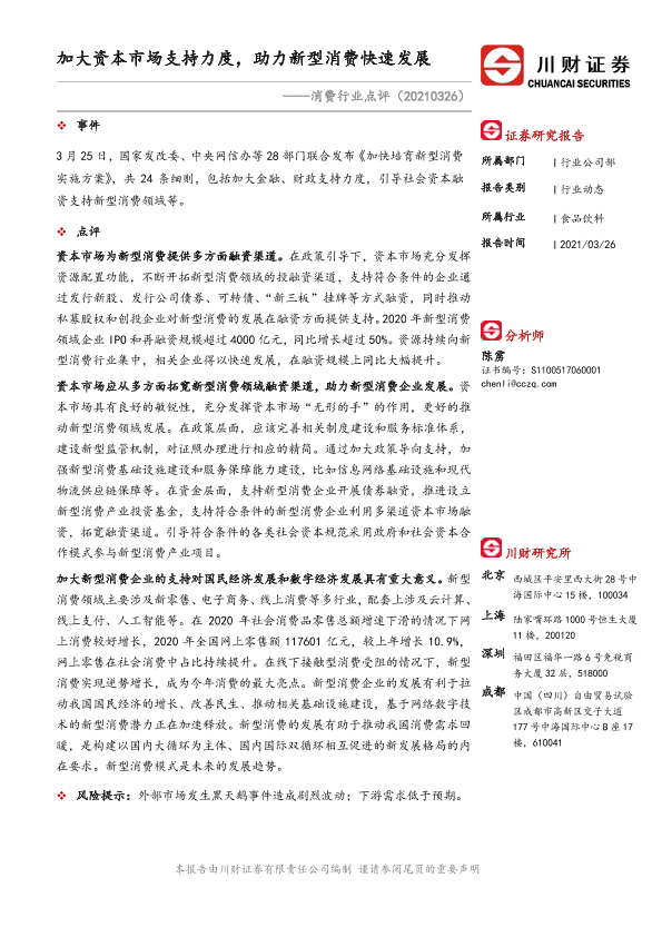 【川财证券】【20210326】消费行业点评:加大资本市场支持力度,助力新型消费快速发展-2页