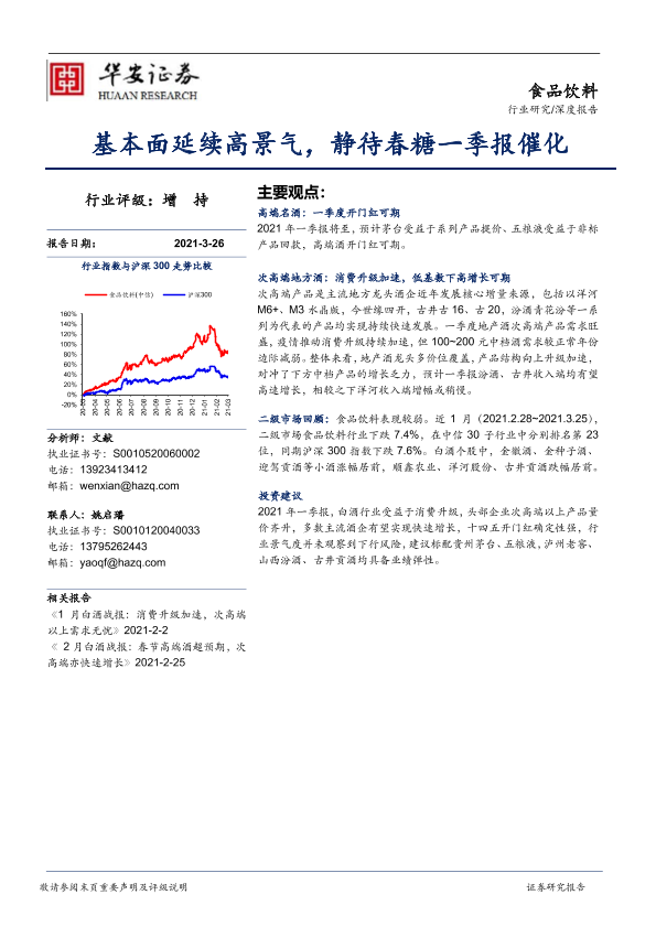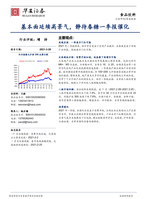 【华安证券】【20210326】食品饮料深度报告:基本面延续高景气,静待春糖一季报催化-13页
