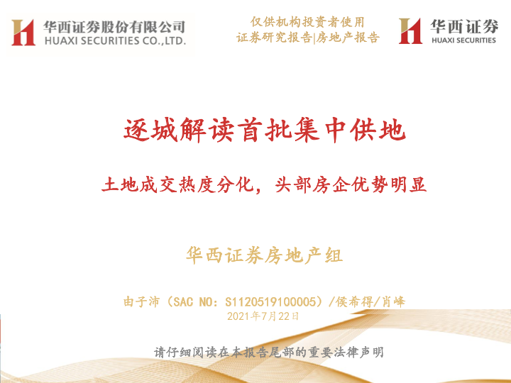 【华西证券】【20210722】房地产行业:逐城解读首批集中供地,土地成交热度分化,头部房企优势明显-81页