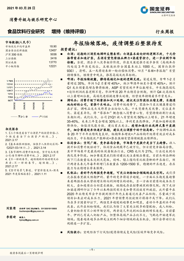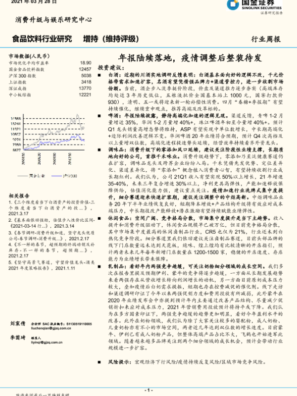 【国金证券】【20210328】20210328-国金证券-食品饮料行业研究:年报陆续落地,疫情调整后整装待发-14页