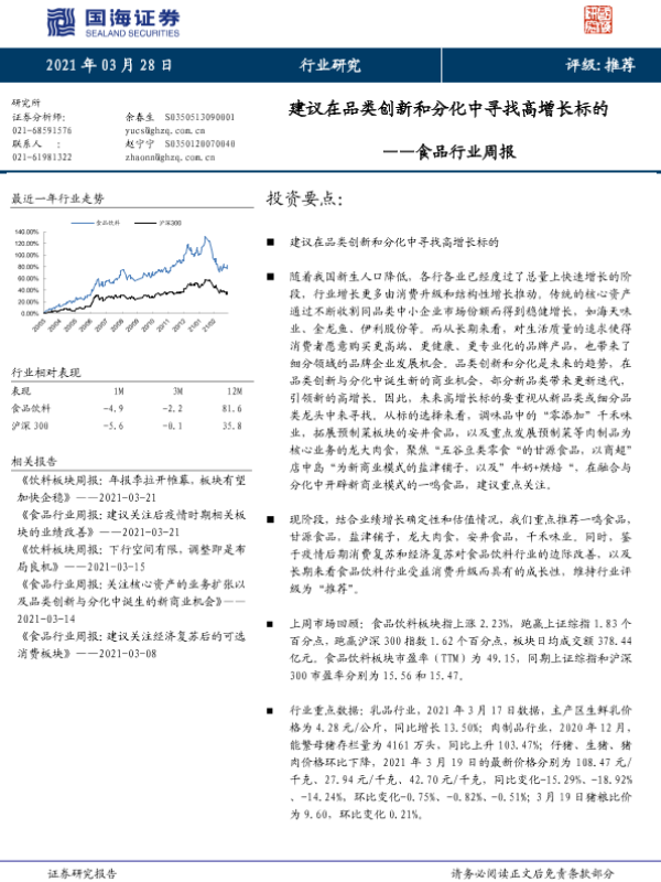 【国海证券】【20210328】20210328-国海证券-食品行业周报:建议在品类创新和分化中寻找高增长标的-22页