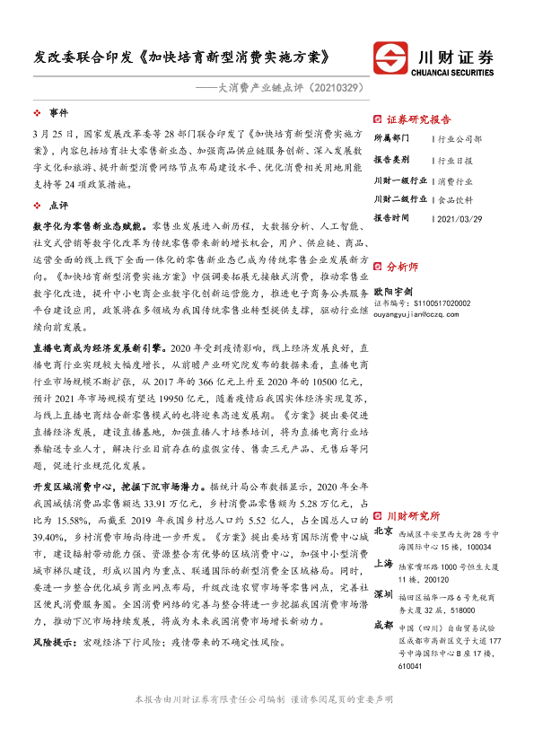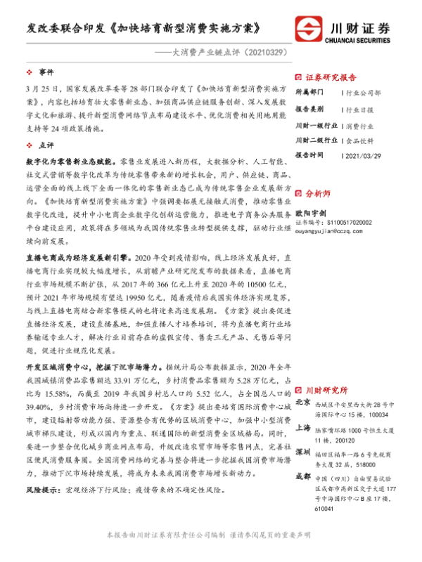 【川财证券】【20210329】大消费产业链点评:发改委联合印发《加快培育新型消费实施方案》-2页
