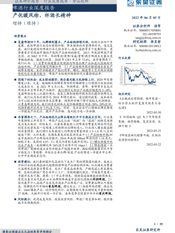 【东吴证券】【20220605】啤酒行业深度报告:产优暖风徐,杯酒长精神-35页