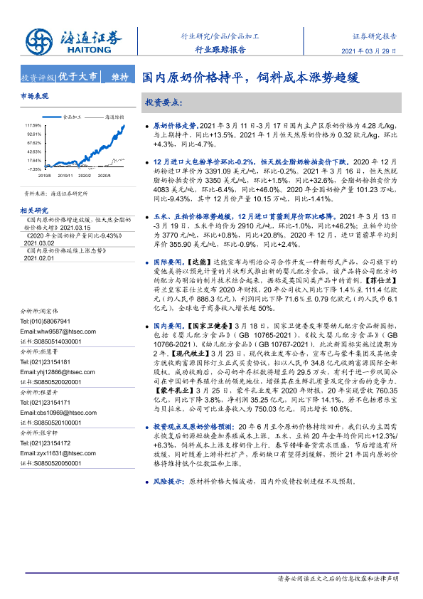 【海通证券】【20210329】食品加工行业跟踪报告:国内原奶价格持平,饲料成本涨势趋缓-10页