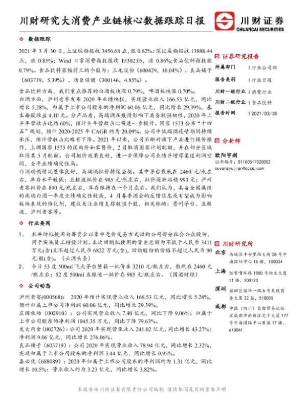 【川财证券】【20210330】食品饮料行业日报:川财研究大消费产业链核心数据跟踪日报-4页
