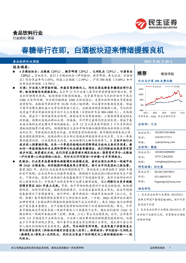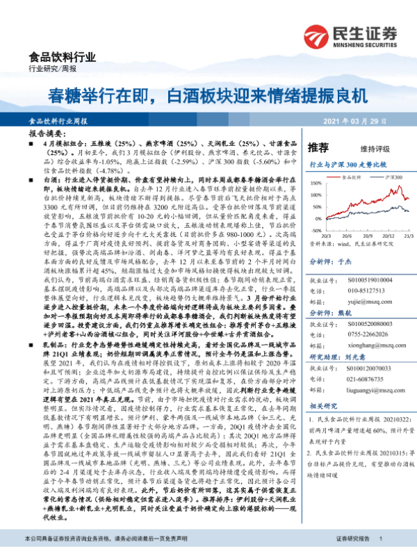 【民生证券】【20210329】20210329-民生证券-食品饮料行业周报:春糖举行在即,白酒板块迎来情绪提振良机-44页
