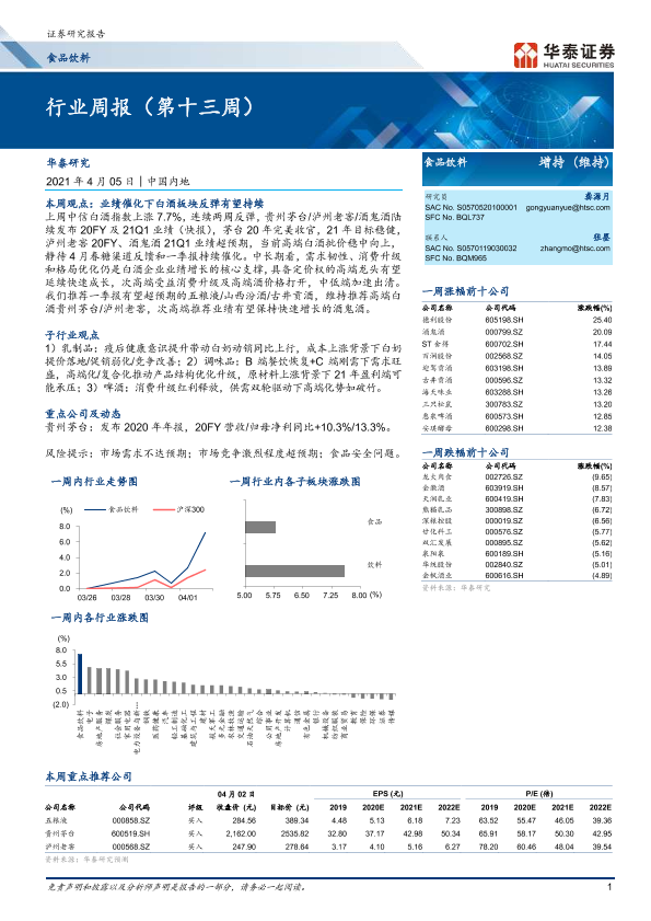 【华泰证券】【20210405】20210405-华泰证券-食品饮料行业周报(第十三周)-19页