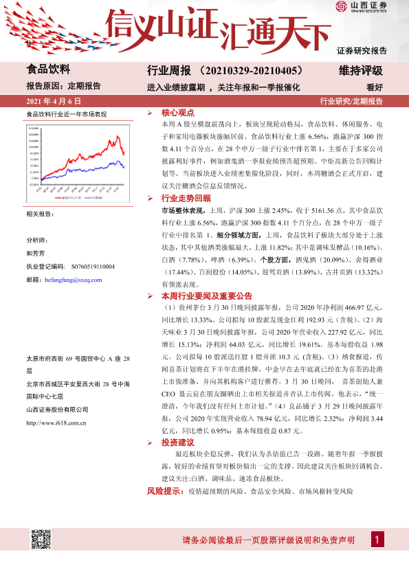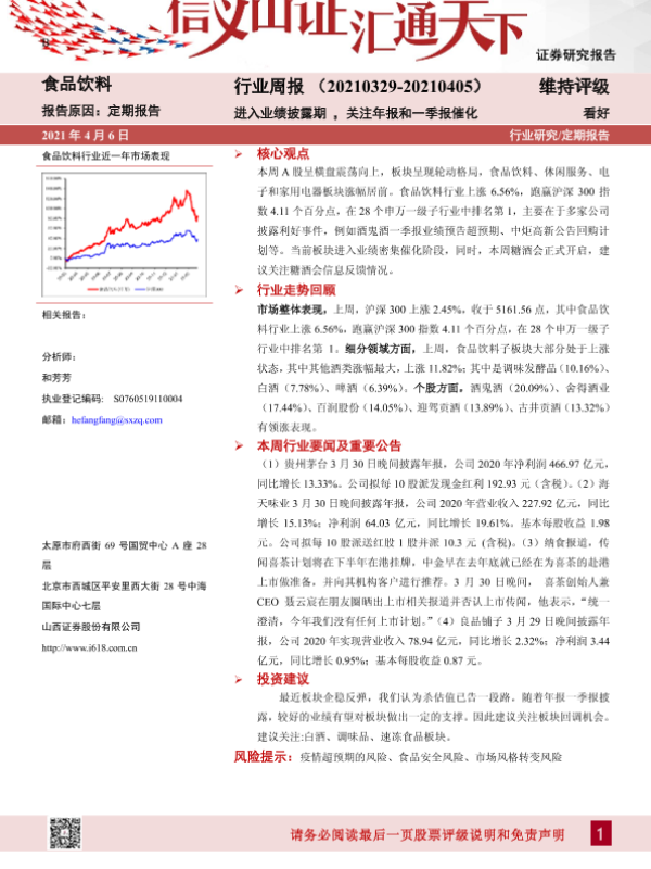 【山西证券】【20210406】食品饮料行业周报:进入业绩披露期,关注年报和一季报催化-10页