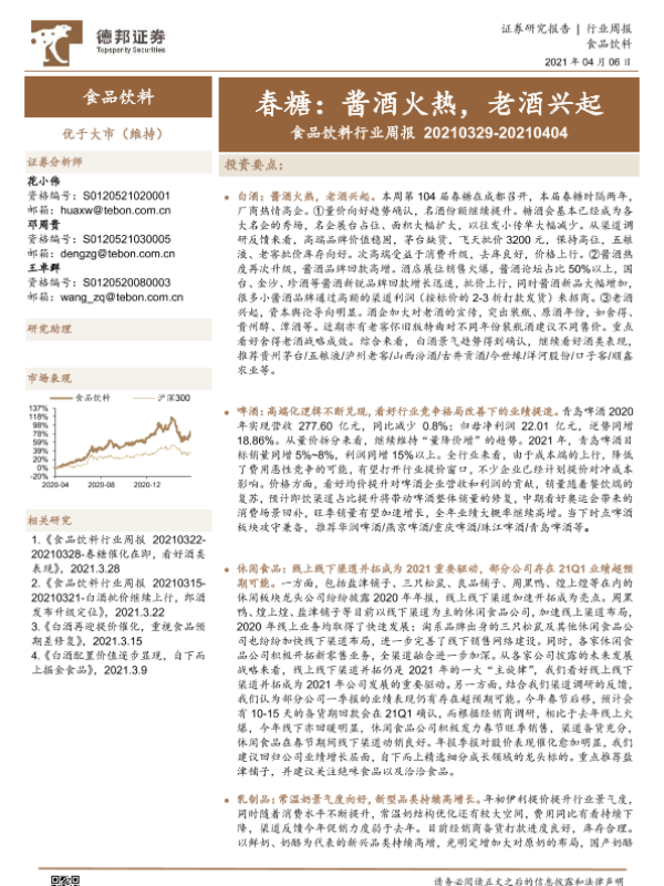 【德邦证券】【20210406】食品饮料行业周报:春糖:酱酒火热,老酒兴起-21页
