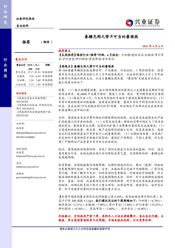 【兴业证券】【20210406】20210406-兴业证券-食品饮料行业周报:春糖见闻之势不可当的酱酒热-16页