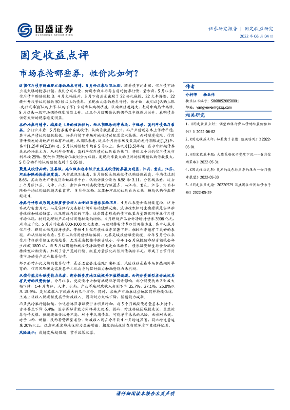 【国盛证券】【20220604】固定收益点评:市场在抢哪些券,性价比如何?-16页