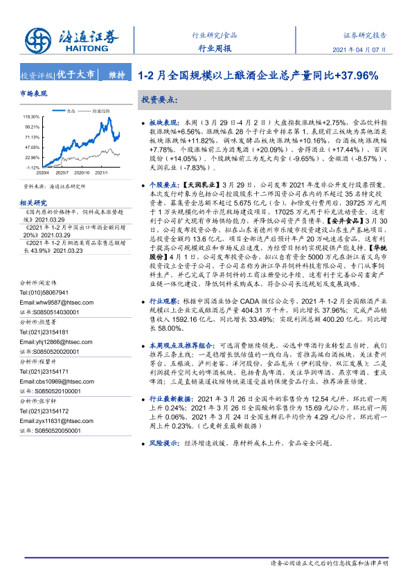 【海通证券】【20210407】20210407-海通证券-食品行业周报:1-2月全国规模以上酿酒企业总产量同比+37.96%-7页