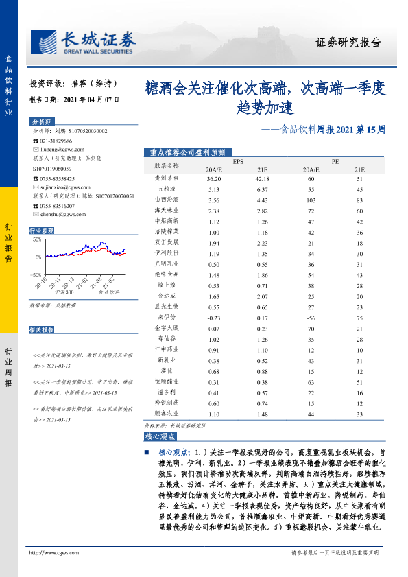 【长城证券】【20210407】食品饮料周报2021第15周:糖酒会关注催化次高端,次高端一季度趋势加速-13页
