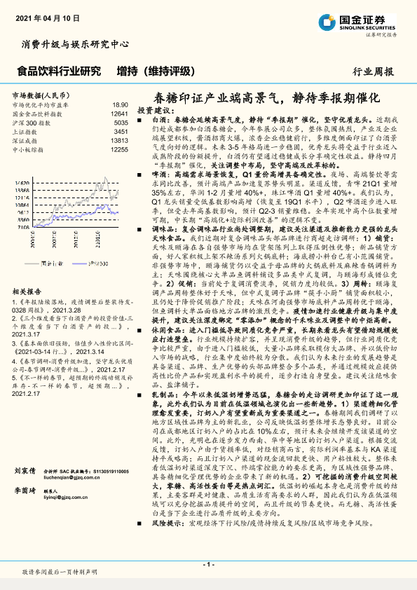 【国金证券】【20210410】20210410-国金证券-食品饮料行业研究:春糖印证产业端高景气,静待季报期催化-13页