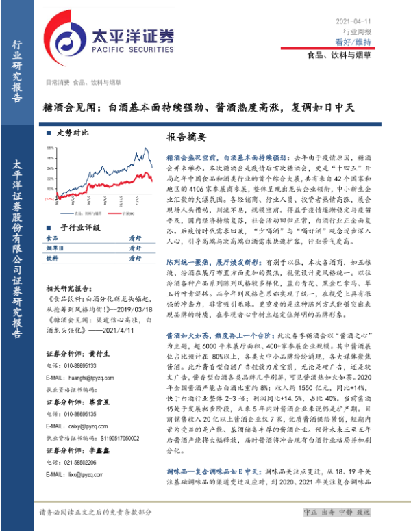【太平洋证券】【20210411】20210411-太平洋-食品、饮料与烟草行业周报:糖酒会见闻:白酒基本面持续强劲、酱酒热度高涨,复调如日中天-15页